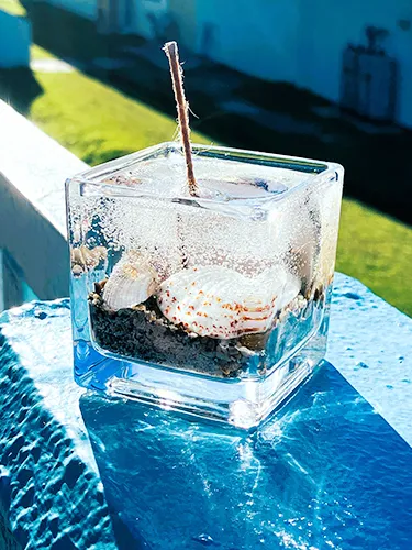 画像は今回のスクーリングで制作したジェルキャンドルです。