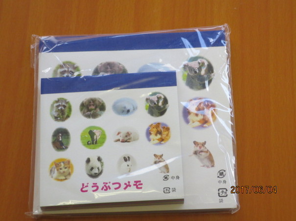 写真 新潟刑務所の動物メモ、折り紙もあり、動物の写真入りです