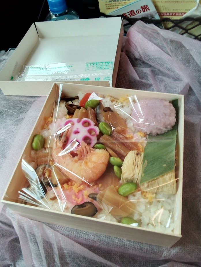 その他、東武浅草駅の鯖寿司(ハーフ)、八王子駅の総菜パン、東京駅で買った牛タンおにぎり等、長距離電車のお供は大切です。