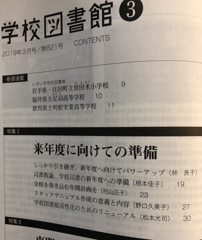 全国学校図書館協議会発行の『学校図書館』2019年3月号に寄稿いたしました。