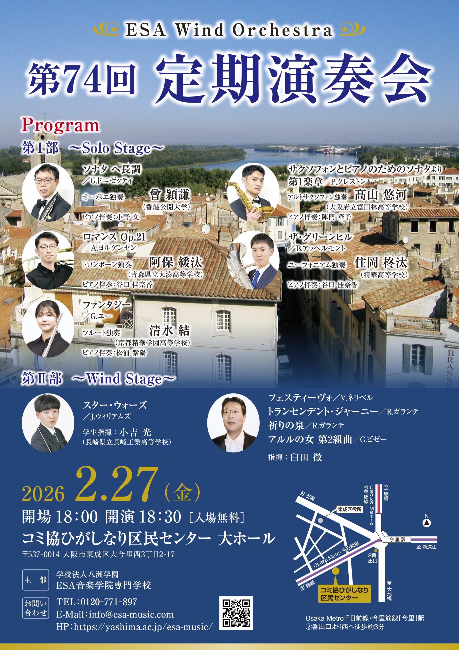 【開催決定!!】ESAウィンドオーケストラ 第74回定期演奏会 【2026年2月27日(金)】