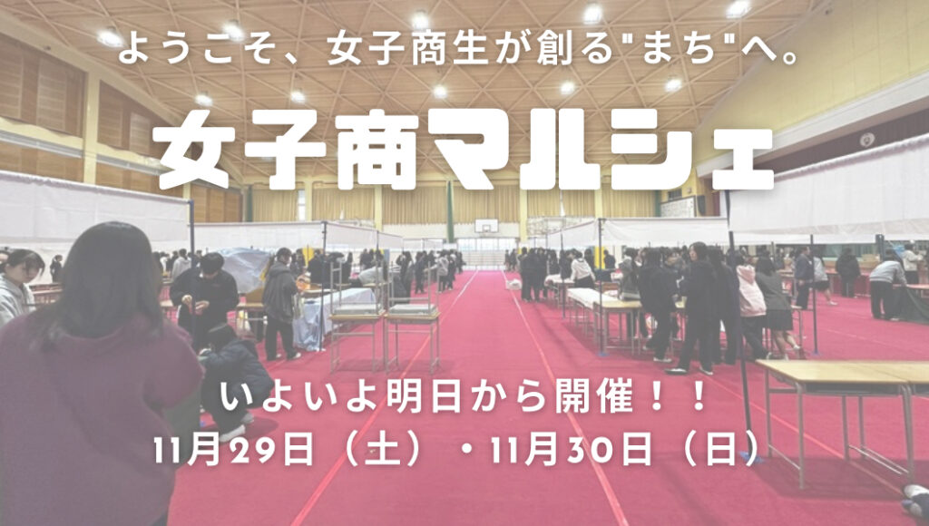 いよいよ明日から開催される、11月29日(土)・30日の「第19回女子商マルシェ」。 昨日と今日は全校をあげた最終準備「マルシェタイム」が行われ、校内は本番前の熱気に包まれました。 教室ではPOPや看板づくりが進み、別の場所では消耗品の確認、セールストークの練習、レジ操作の最終チェック。どの生徒も「ご来場者さまの笑顔をつくりたい」という思いで、最後の仕上げに向き合っていました。 ここまで多くの協力店舗・企業の皆さまと打ち合わせを重ねながら準備を進めてきました。実行委員は全体を支え、店舗リーダーたちはメンバーをまとめ、前に進め続けてきました。その姿に引っ張られるように、全生徒が「最高の2日間」をつくるために走り続け、今日まで積み上げて…