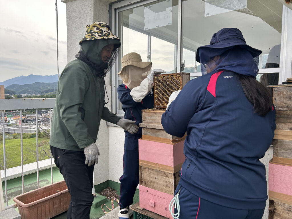 昨年度は採蜜に失敗していたことから、蜜を取れるかドキドキしながら屋上に集まりました。日々の努力が実を結び、今年はたっぷりの蜂蜜を採取することができ、皆で瞬間を一緒に喜び合いました。