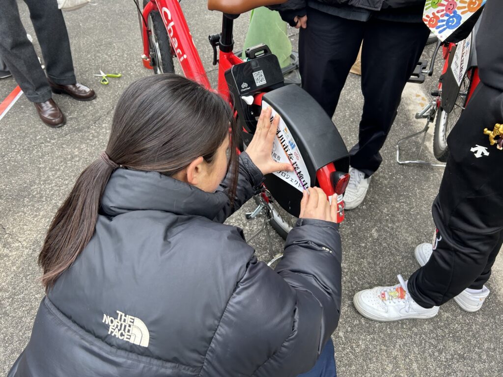 その成果として、生徒がデザインしたオリジナル車体と新たなチャリチャリ専用ポートがお披露目されました。