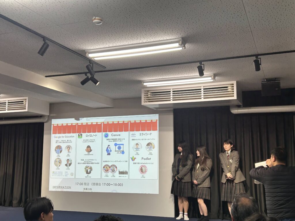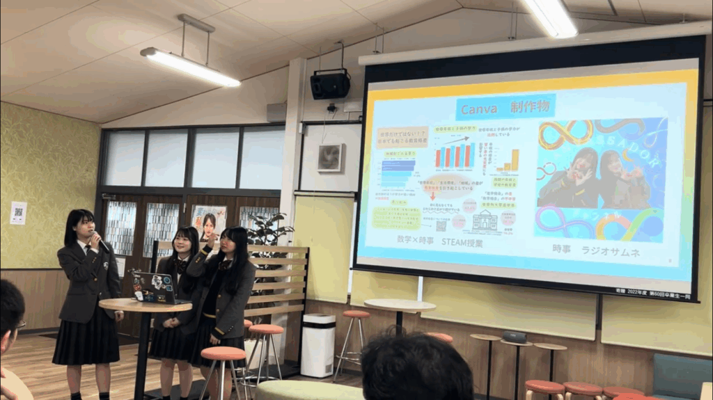 3名は入学当初から約3年間にわたりCanvaを愛用しており、授業の課題から学校行事、プライベートに至るまで、高校生活のあらゆる場面でデジタルクリエイティブを実践しています。今回の発表では、現役高校生ならではの視点で、具体的な制作物やツールの魅力を語ってくれました。