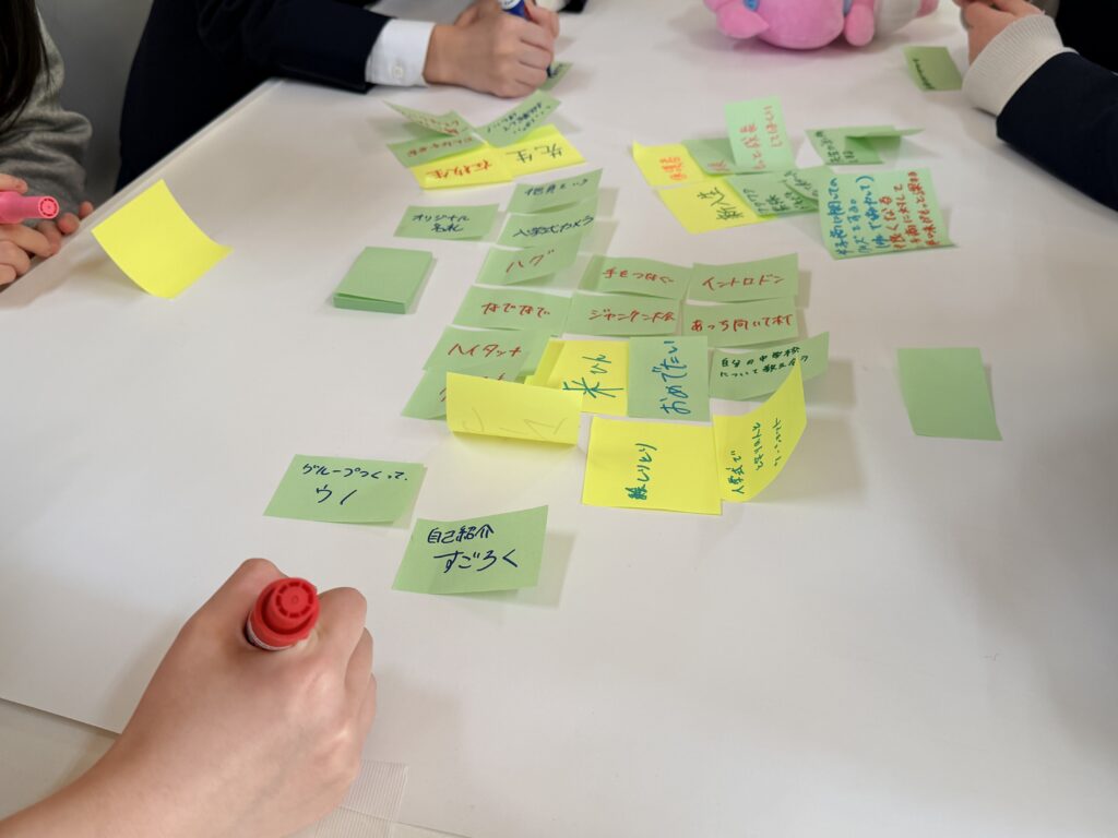 参加者の多くが初対面でしたが、開始前から自然と打ち解け、入学式に関わるさまざまな立場の人を想像しながらアイデアを一つにまとめていく時間は盛り上がりを見せました。グループごとの発表では、次々と手が挙がり、自由な発想が数多く共有されました。会場全体が驚きとワクワクに包まれる時間となりました。